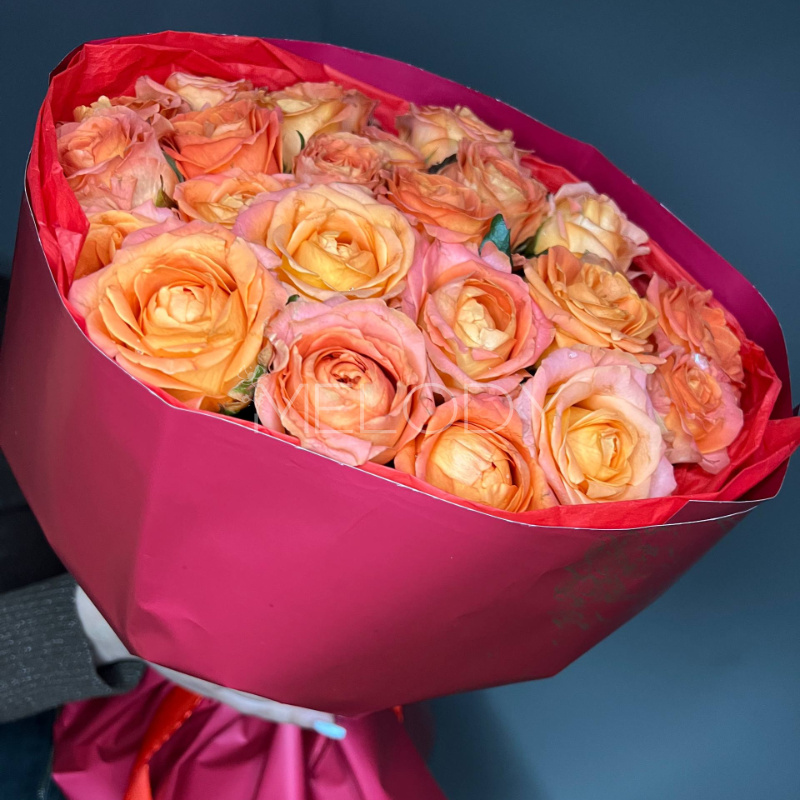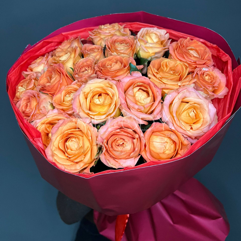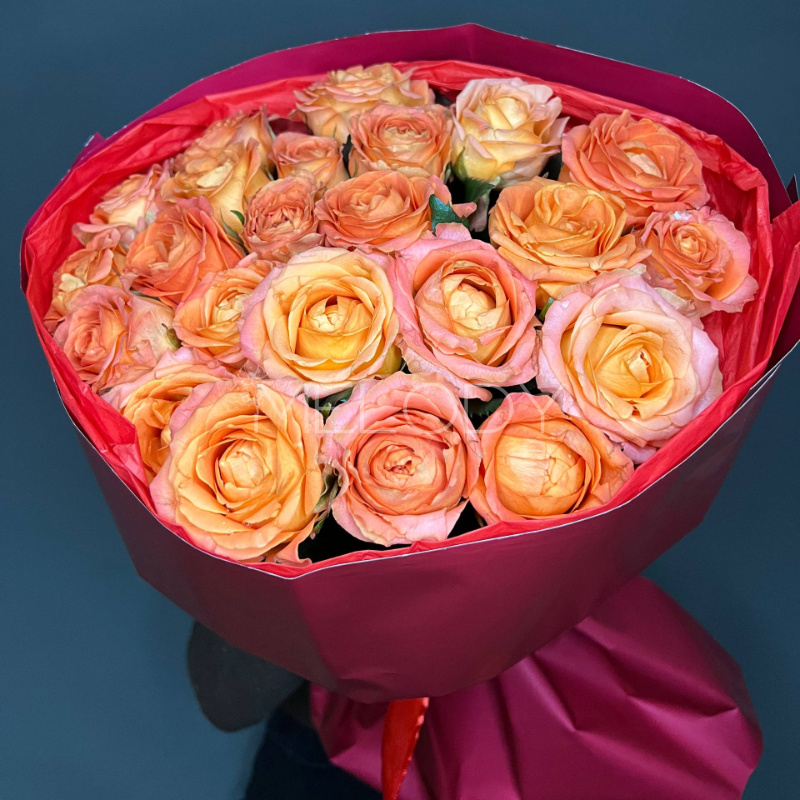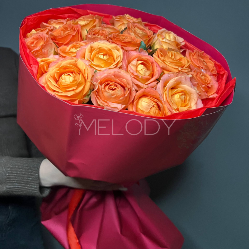 Этот букет — как яркое музыкальное произведение, где каждая из 23 оранжевых роз становится отдельной нотой в мощном и страстном аккорде. Одноголовые розы насыщенного апельсинового оттенка создают эффект сияющего градиента, словно переливы мощного оркестра.