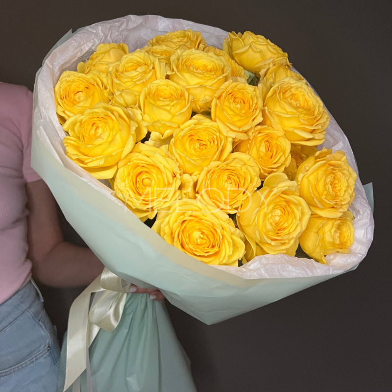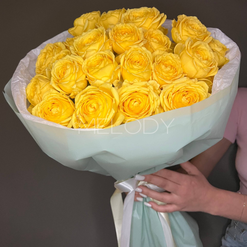 Семь пышных веток желтой кустовой розы исполняют солнечную сонату, наполняя пространство теплом и гармонией. Каждая ветка — как отдельная музыкальная фраза, вместе создающая целостное и радостное произведение. Букет идеально подходит для подарка близкому другу, коллеге или в качестве яркого акцента в интерьере. Нежная упаковка дополняет образ, делая его законченным и элегантным.