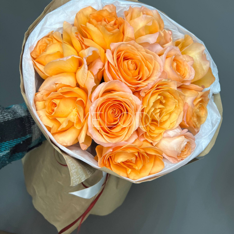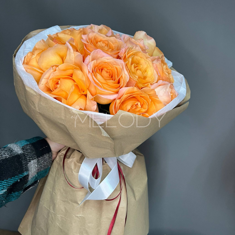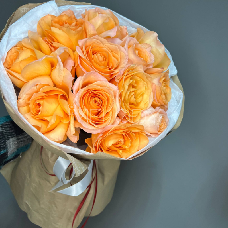 11 персиково-оранжевых роз, запечатлевших теплые краски летнего заката. Упакованные в лаконичный крафт, они говорят о стиле и искренности больше, чем слова. Каждый бархатистый бутон будто вобрал в себя последние лучи солнца — теплое сияние, переходящее в нежную вечернюю прохладу. Этот букет — готовое признание в любви к жизни, к моменту, к тому, кто его получит. Подарите тот самый миг, который хочется продлить вечность.